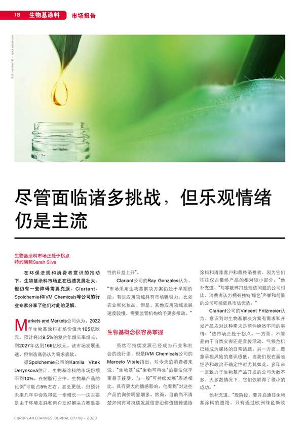 專題:防護涂料 生物基直接替代解決方案 當前研發情況和面臨的主要挑戰 年度調查:2023年回顧和2024年展望