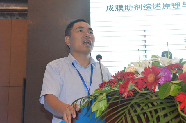 潤泰化學股份有限公司張高峰副總經理做了《乳液用成膜助劑的發展與應用》報告,張總從成膜助劑的機理入手,對比了不同種類的成膜助劑的優劣,指出潤泰公司的成膜助劑產品在涂料體系中能起到很好的輔助作用,對乳液的穩定性、相容性、抗凍融性、耐洗刷性、分散效率、潤濕效果都有很好的體現。