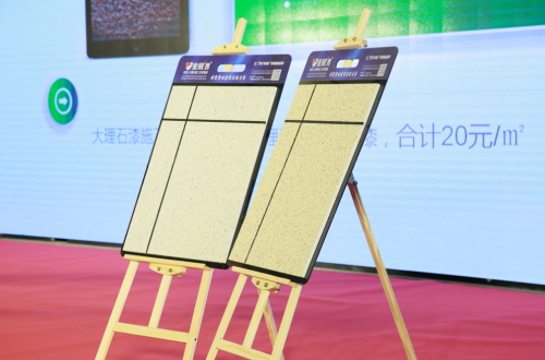 呼應(yīng)會議的核心主旨,金展涂料鴻針對2019年的市場情況,在會上隆重推出了全新砂包砂大理石漆,屬行業(yè)首推。金展鴻大理石漆為CCTV央視展播品牌,單平米造價低,效果可媲美天然原石,莊重氣派,施工非常方便,可噴涂可批刮,特別適合工裝,大工地使用,產(chǎn)品管用長達(dá)五十年。會議還特別介紹了金展鴻新材料集團旗下澳芙高端生態(tài)藝術(shù)壁材,在量身定制、協(xié)助施工、施工培訓(xùn)專業(yè)一條龍服務(wù)的護航下,其能使居室空間完美展現(xiàn)意大利藝術(shù)與新時代個性潮流風(fēng)格。