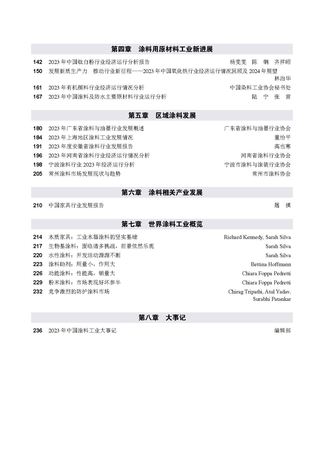 第八章,大事記。梳理了2023年中國涂料及相關行業的主要記事,作為史實性資料載入史冊。