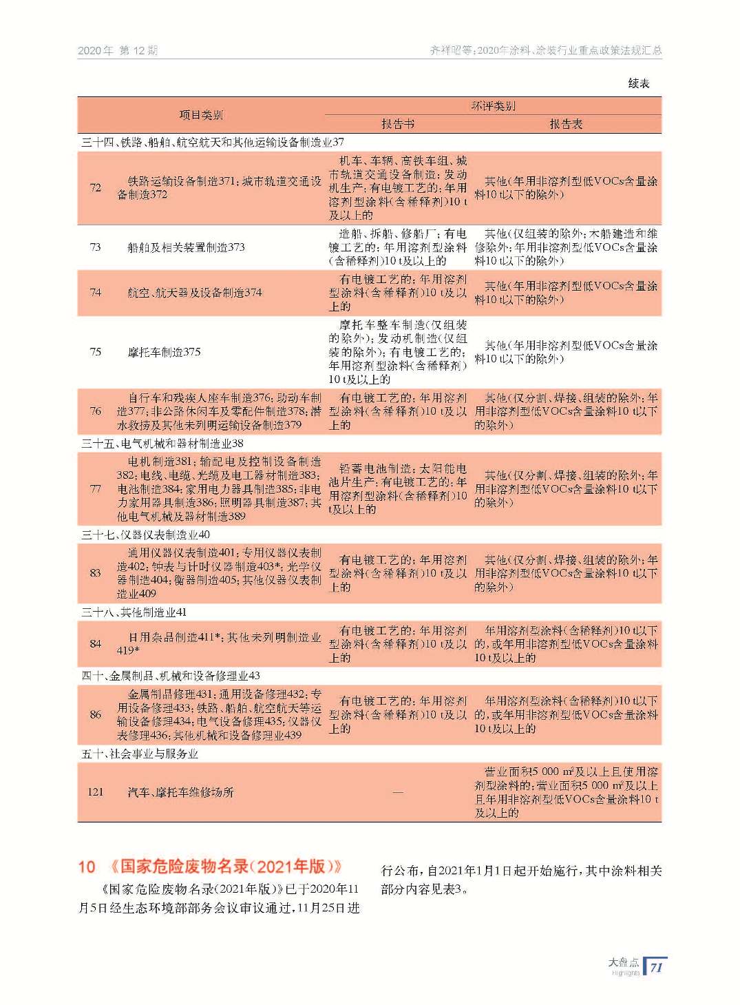 2020年涂料、涂裝行業(yè)重點(diǎn)政策法規(guī)匯總