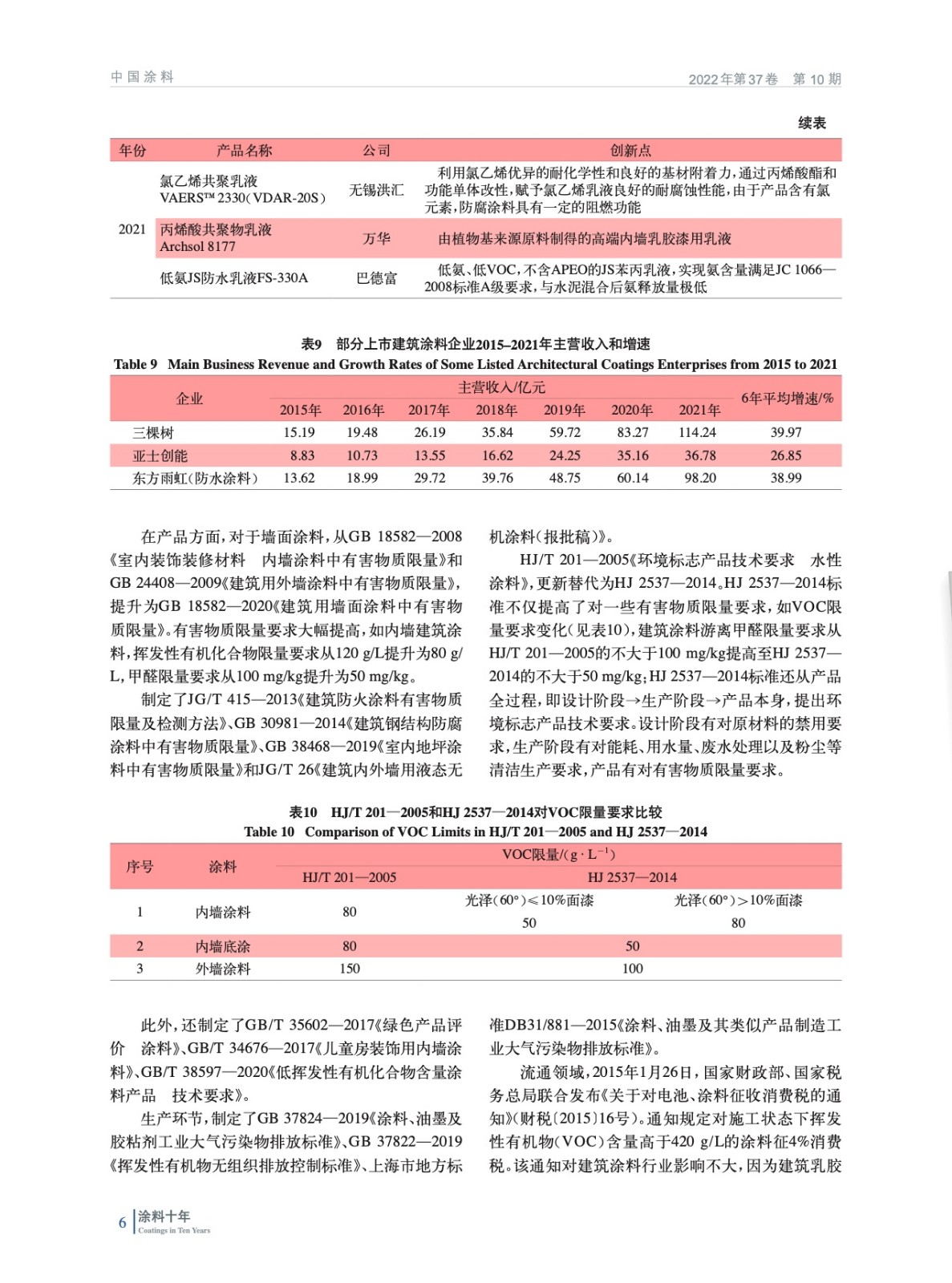 在2012–2021年的十年間,在嚴厲的房地產調控 和舊房翻新等新動力的作用下,在建筑涂料行業內部 創新的推動下,我國建筑涂料不斷向前發展。