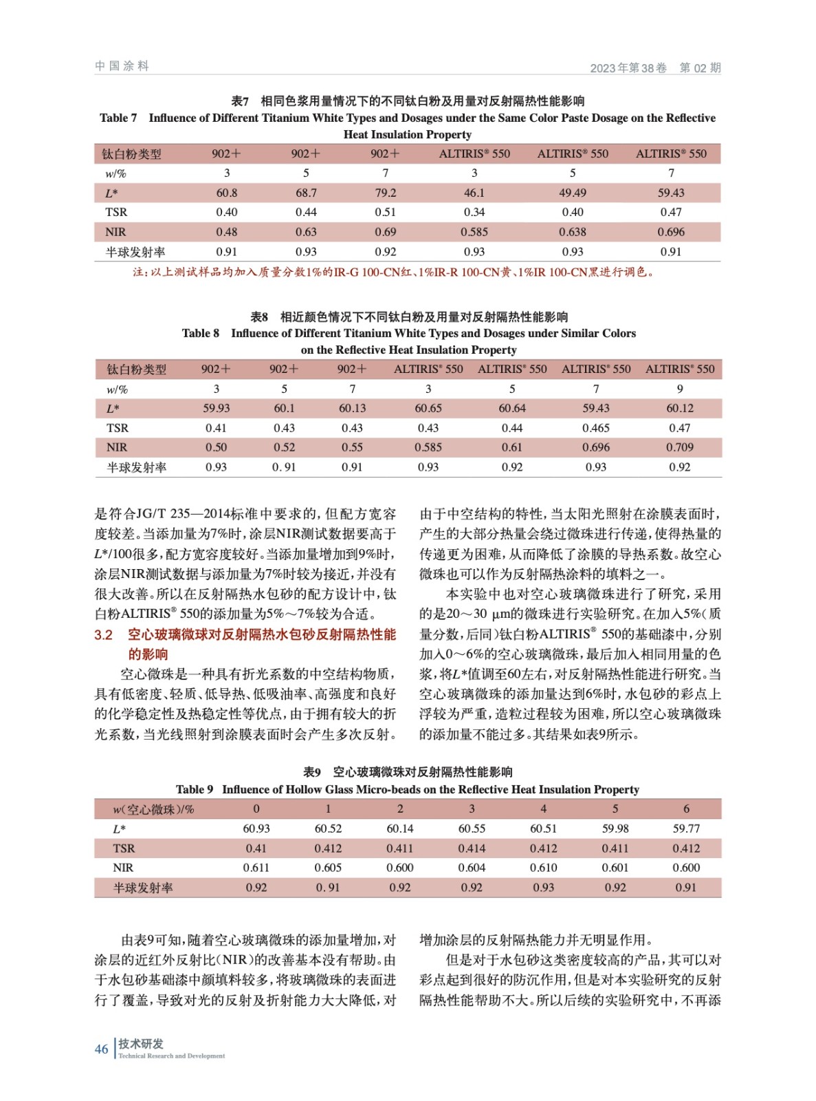 針對反射隔熱水包砂多彩涂料的制備及應用進行研究,在原有的配方體系中,通過對反射隔熱鈦白粉、反射隔熱彩砂、空心玻璃微球影響因素研究,得到反射隔熱性能優異的反射隔熱水包砂多彩涂料。