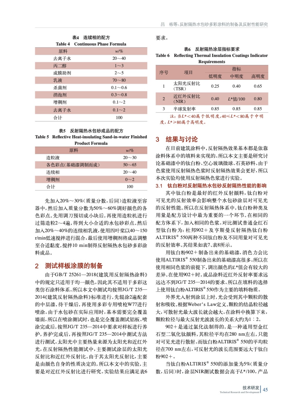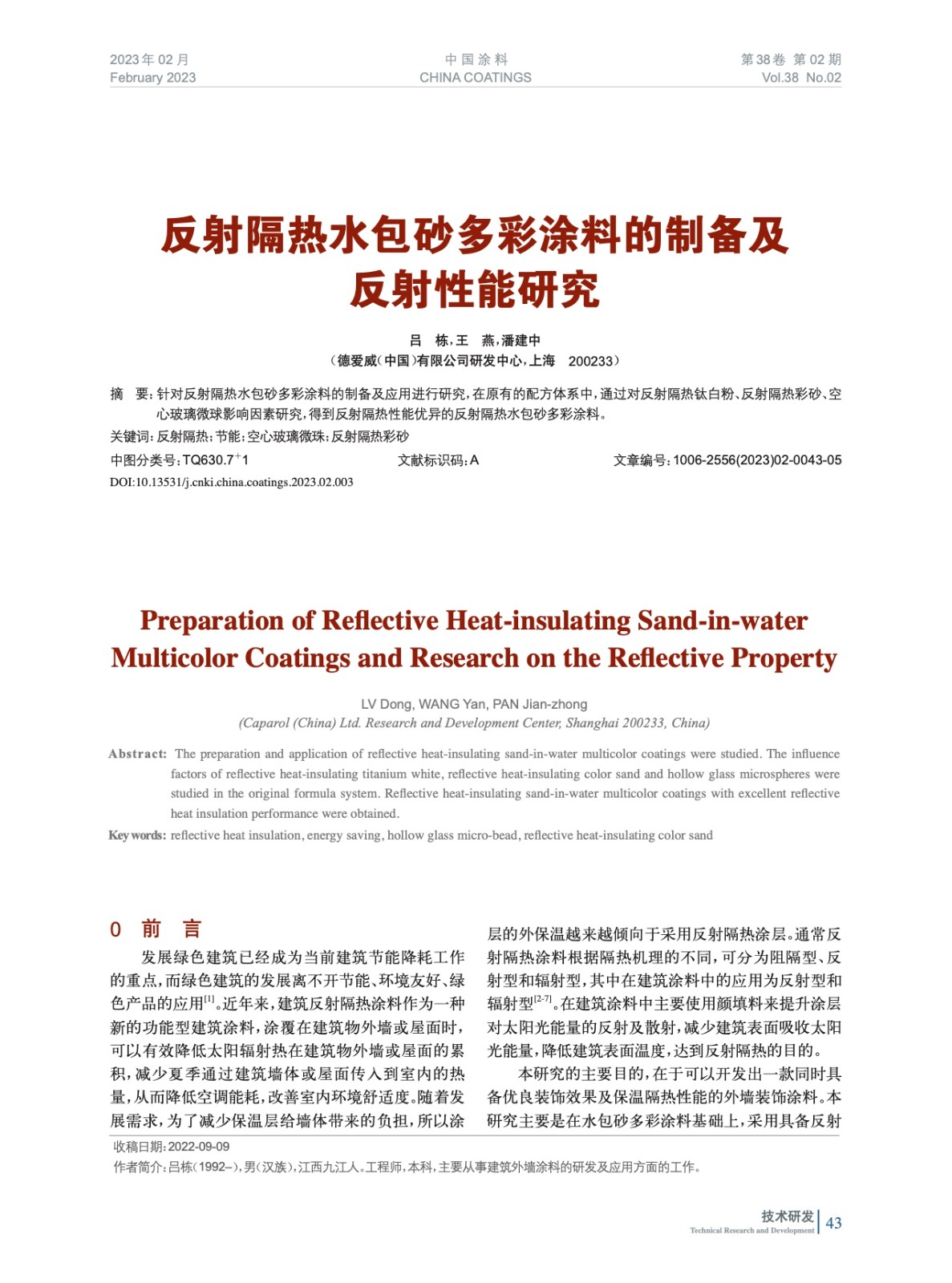 反射隔熱水包砂多彩涂料的制備及反射性能研究