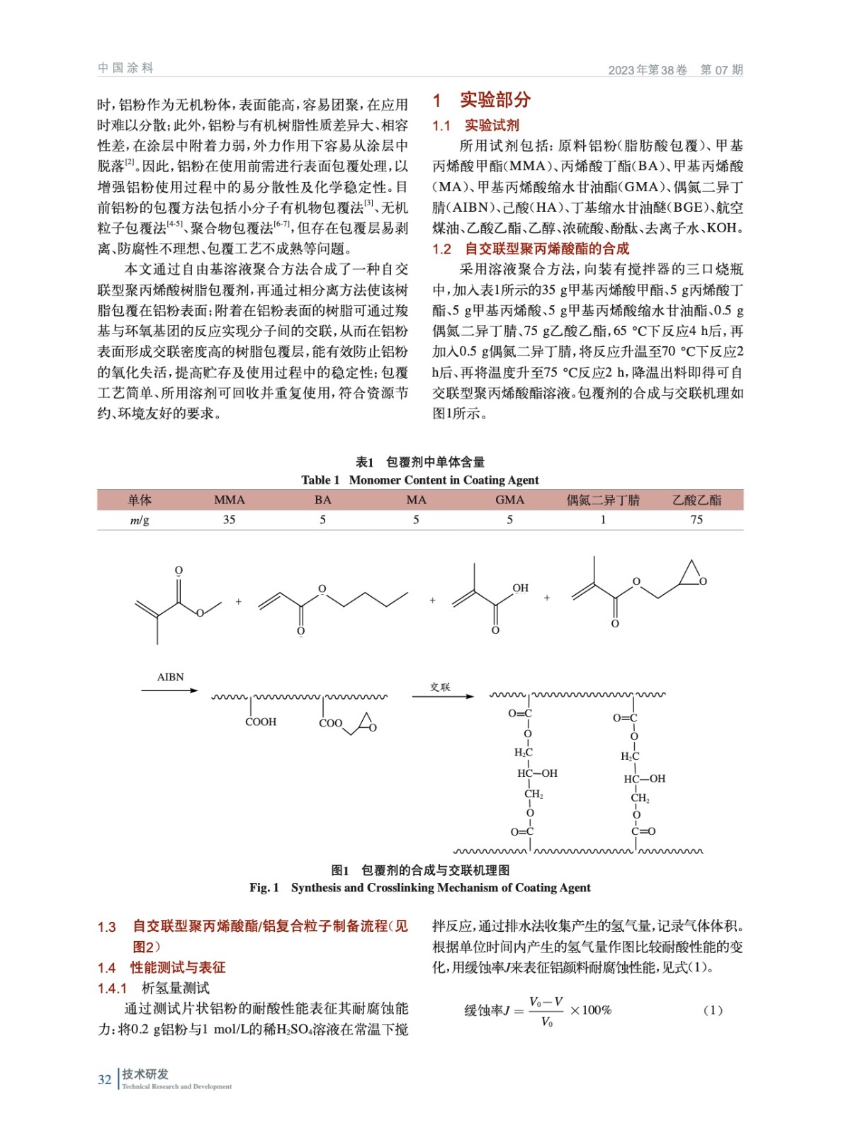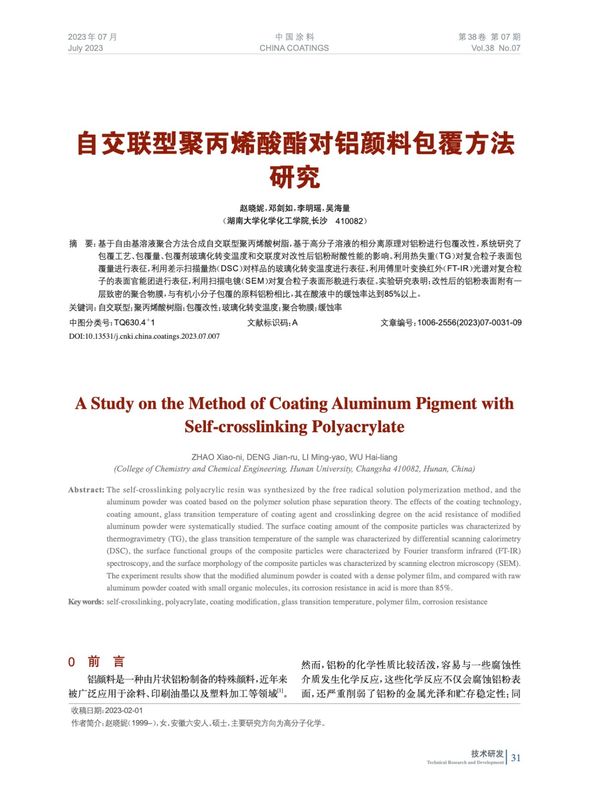 自交聯(lián)型聚丙烯酸酯對(duì)鋁顏料包覆方法研究
