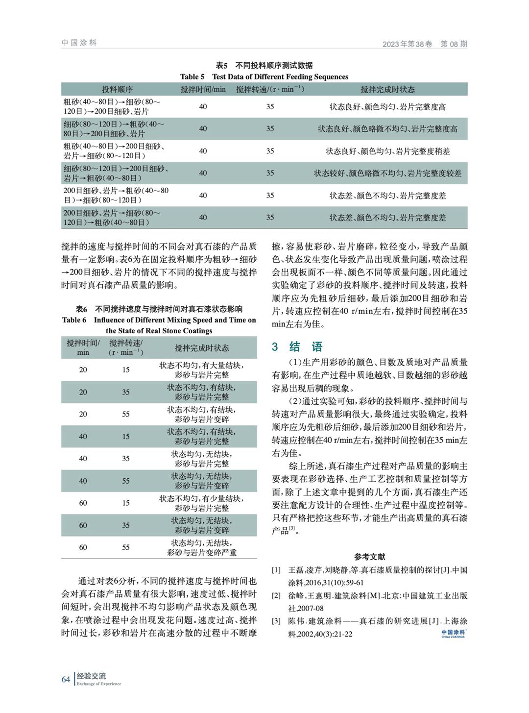 從彩砂質量、投料順序、攪拌時間和轉速3個方面入手分析探討生產過程控制對真石漆產品質量的影響,從而提升真石漆批次之間的穩定性。
