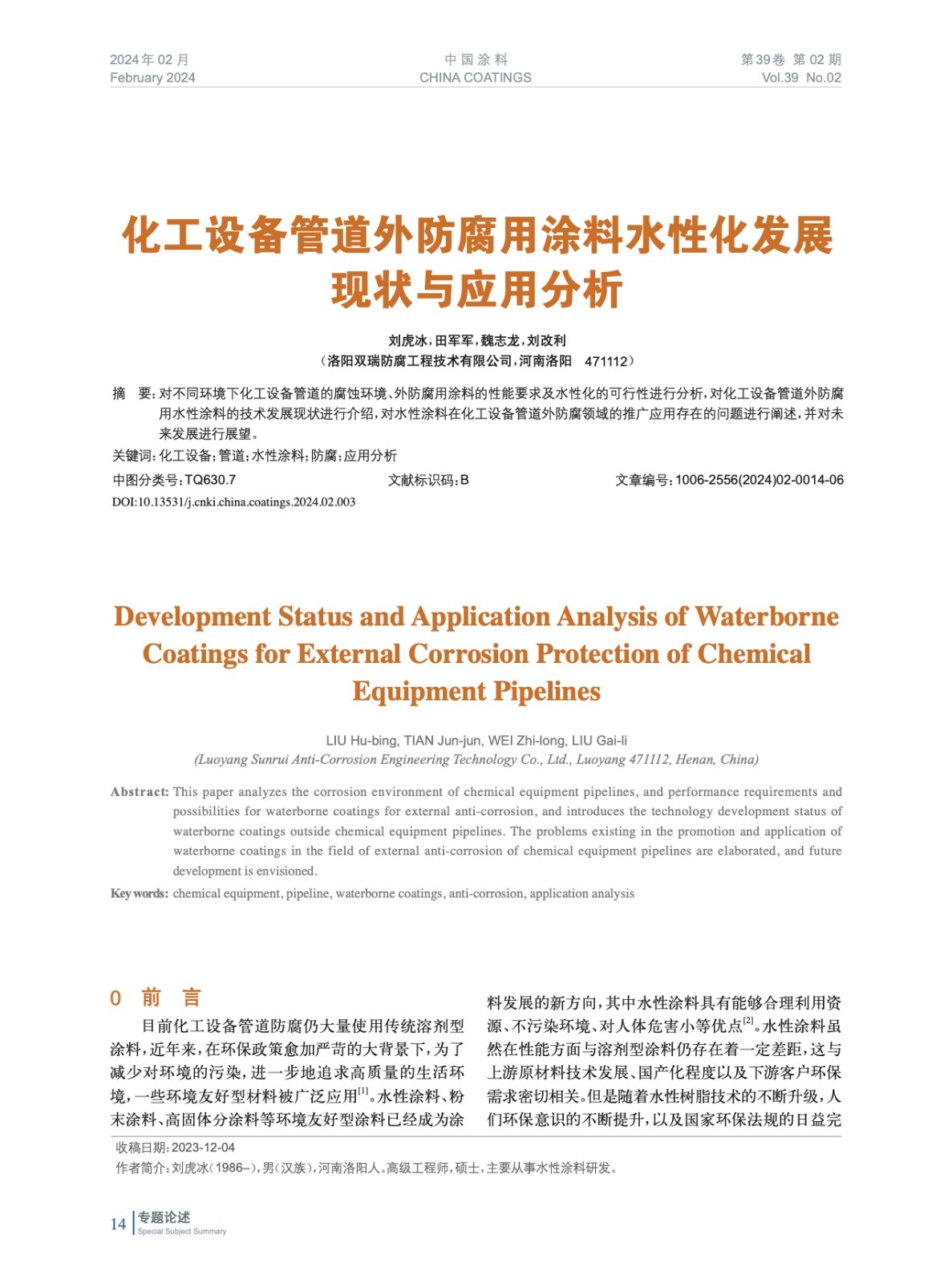 本文系作者@劉虎冰,田軍軍,魏志龍,劉改利 授權中國涂料網發表,并經中國涂料網編輯,未經允許不得轉載,如需轉載請聯系chinacoatingnet@vip.163.com