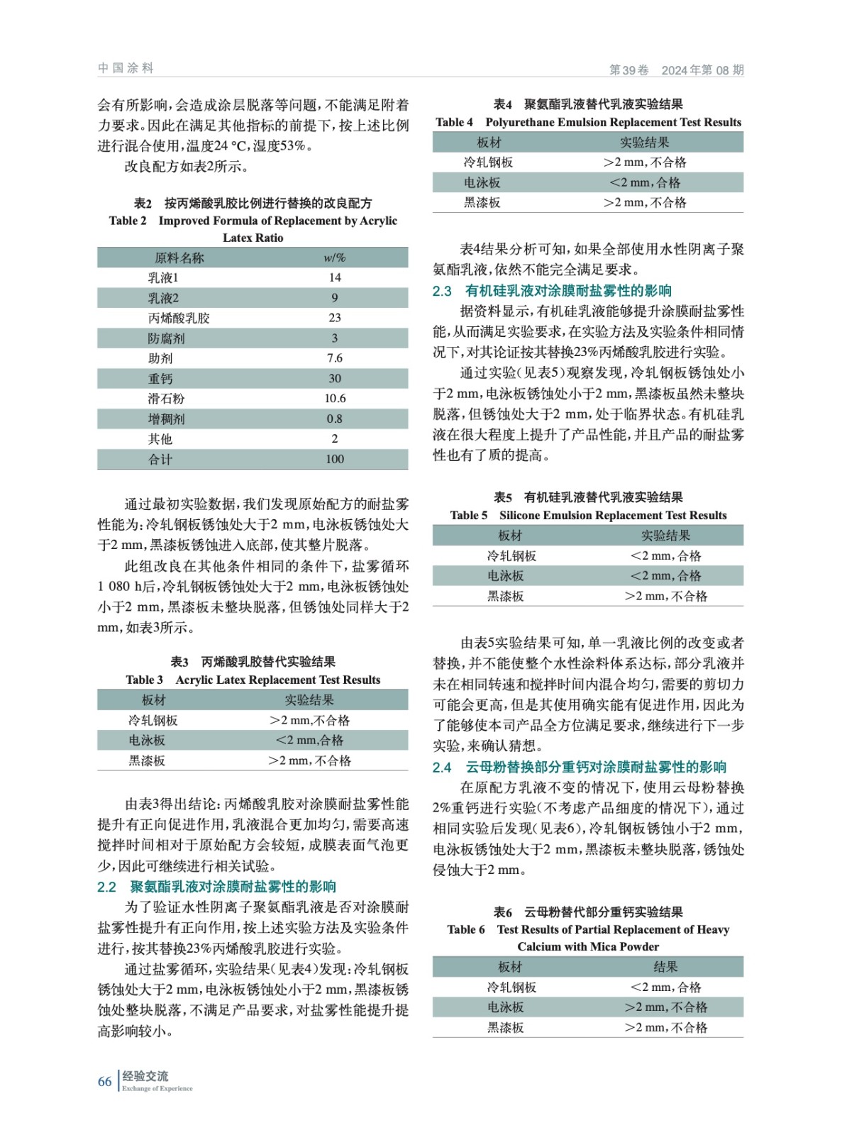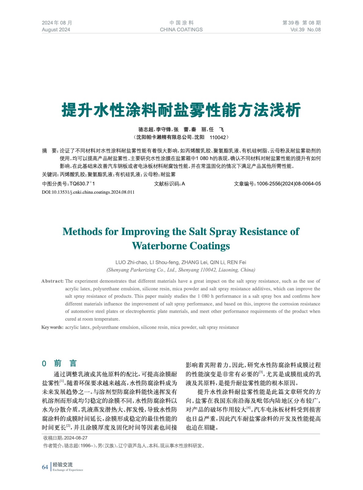 摘要:論證了不同材料對水性涂料耐鹽霧性能有著很大影響,如丙烯酸乳膠、聚氨酯乳液、有機硅樹脂、云母粉及耐鹽霧助劑的使用,均可以提高產品耐鹽霧性。主要研究水性涂膜在鹽霧箱中1 080 h的表現,確認不同材料對耐鹽霧性能的提升有如何影響,在此基礎來改善汽車鋼板或者電泳板材料耐腐蝕性能,并在常溫固化的情況下滿足產品其他所需性能。
