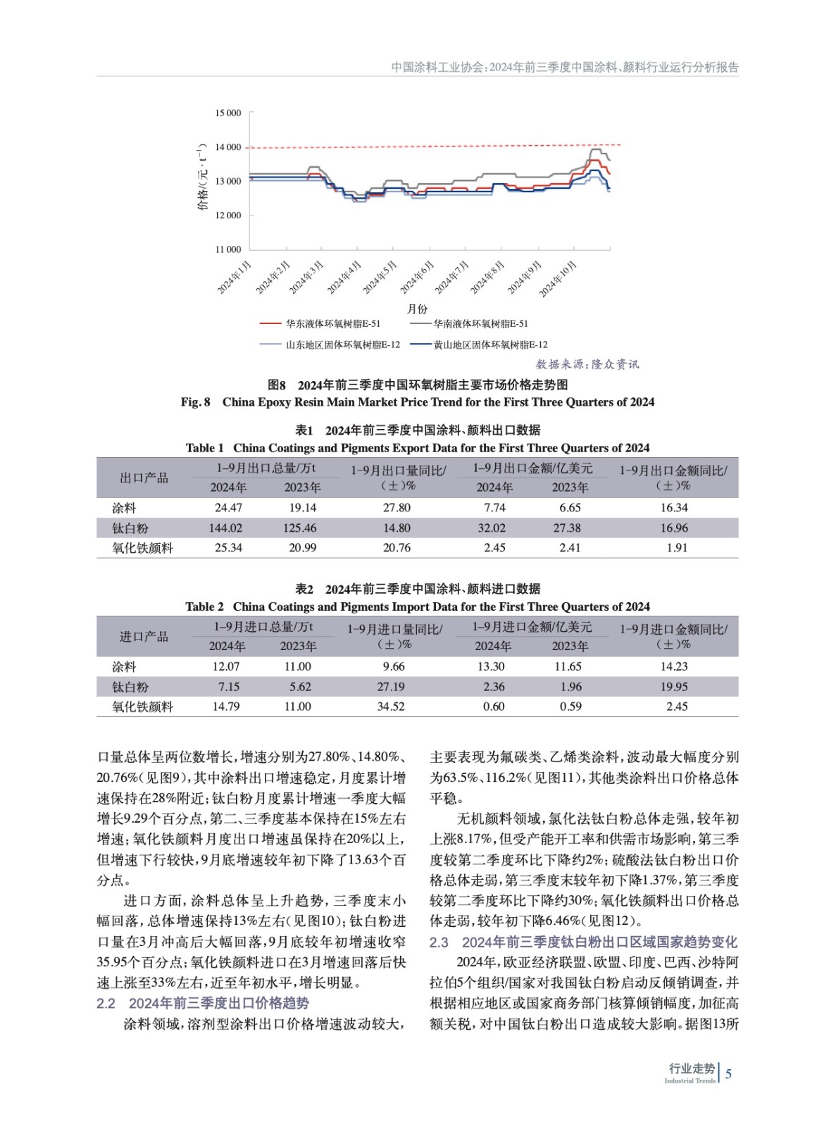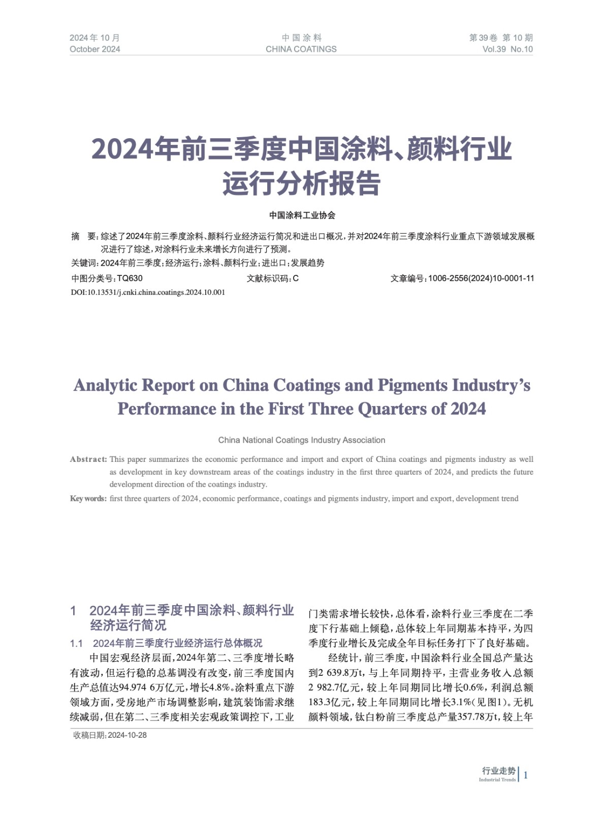 2024年前三季度中國涂料、顏料行業運行分析報告