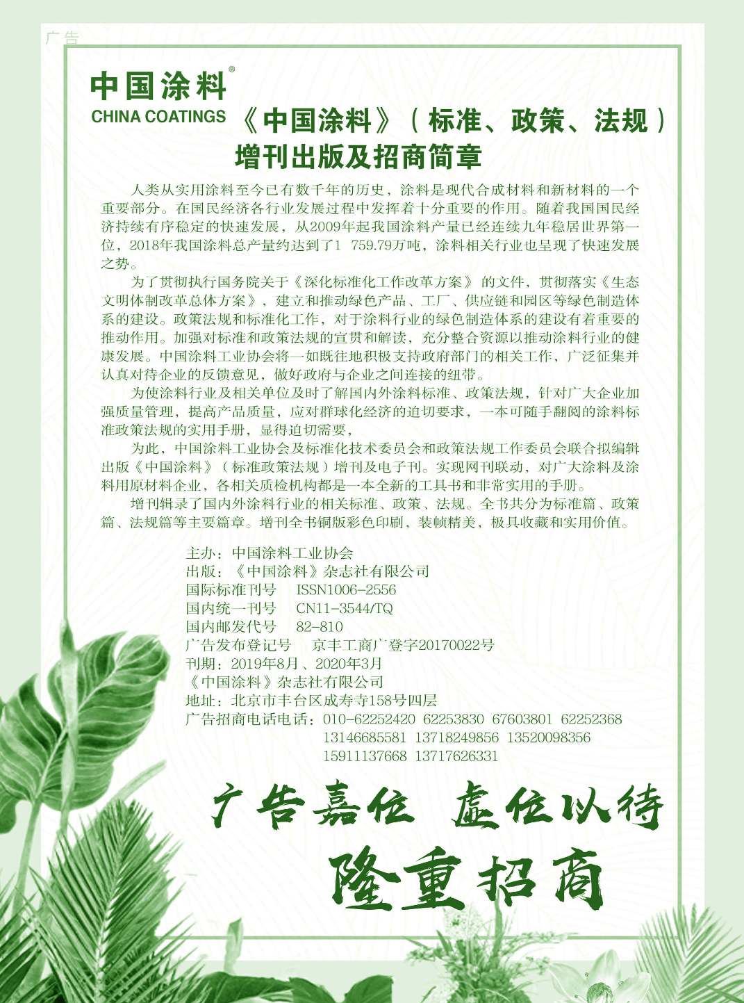 上海翔資、廣告招商、湖南金磐、武漢現(xiàn)代工業(yè)技術研究院、《中國涂料》征訂通知