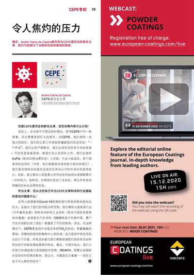 本文系作者@André Vieira de Castro,CEPE委員會新任主席 授權中國涂料網發表,并經中國涂料網編輯,未經允許不得轉載,如需轉載請聯系chinacoatingnet@vip.163.com