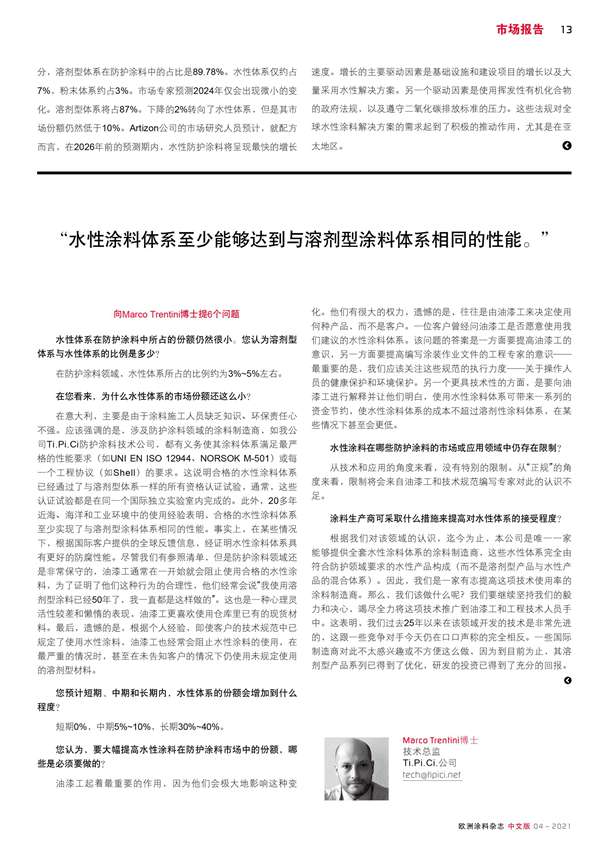 防護涂料市場的最新數據以及一位專家對水性體系在該領域應用的意見