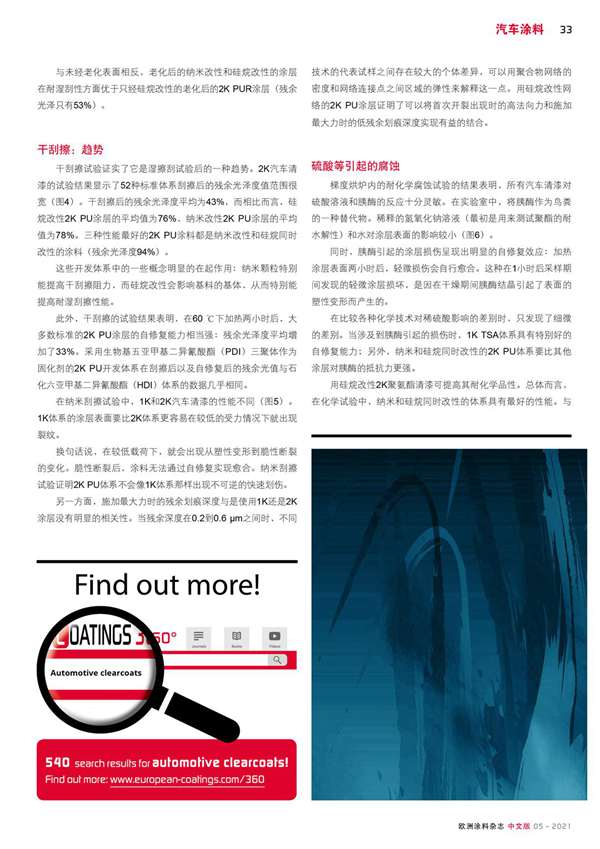 摘要:對95種汽車清漆體系進(jìn)行了干/濕刮擦試驗(老化前后)和耐化學(xué)品試驗。該基準(zhǔn)研究的試驗揭示了各體系之間存在巨大的差異。
