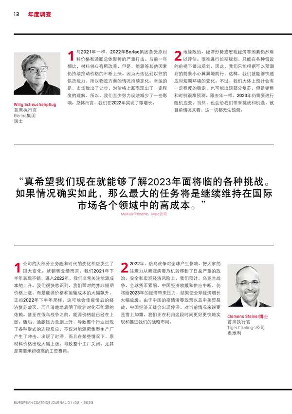 歐洲涂料生產商對2022年的回顧和2023年的預測