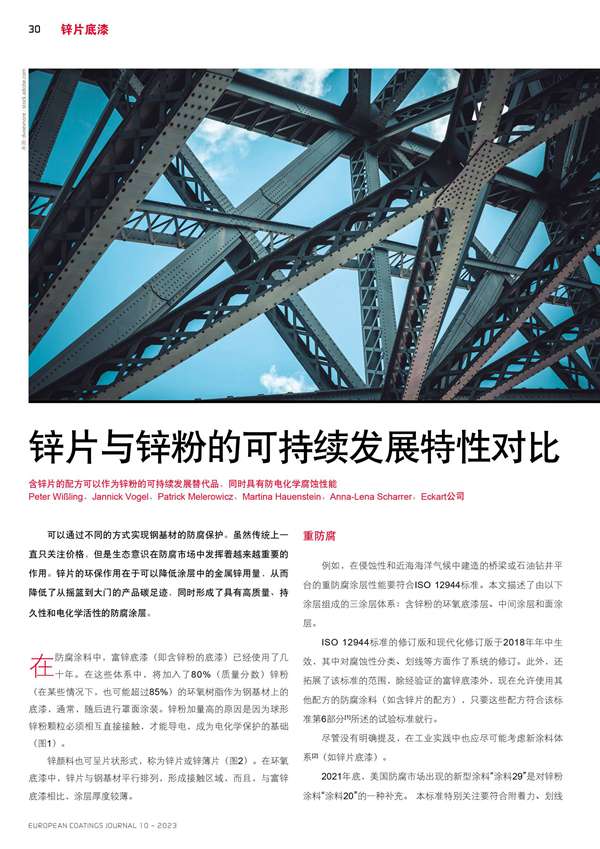 含鋅片的配方可以作為鋅粉的可持續(xù)發(fā)展替代品, 同時具有防電化學腐蝕性能