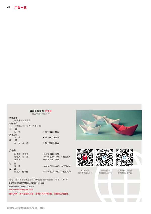 主辦:《中國涂料》雜志社有限公司 電話:010-62252368