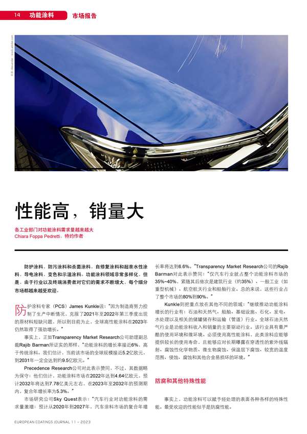 各工業部門對功能涂料需求量越來越大