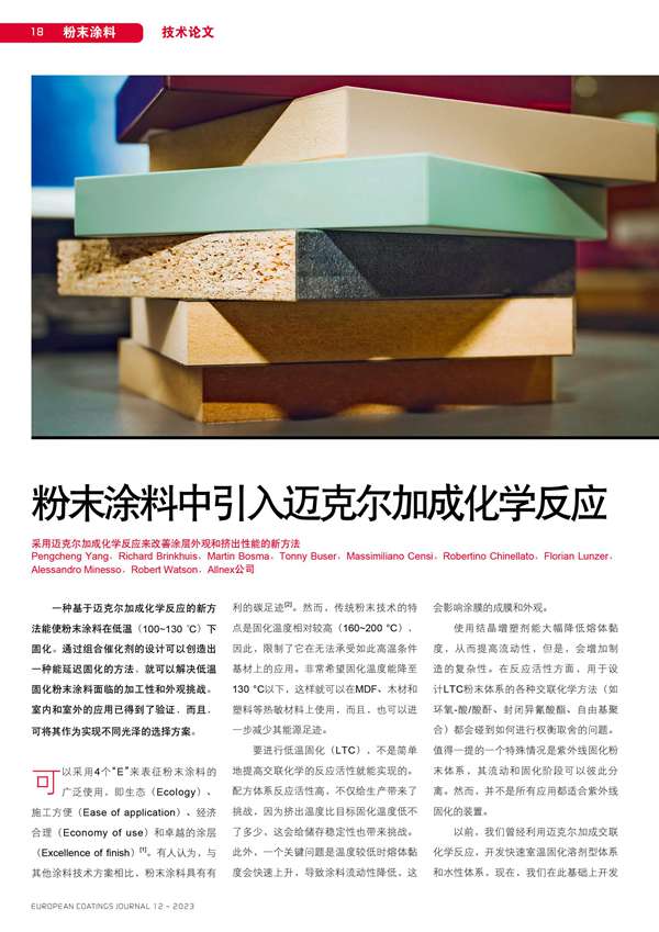 采用邁克爾加成化學反應來改善涂層外觀和擠出性能的新方法