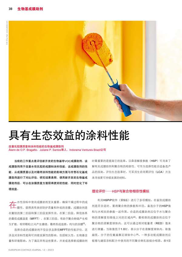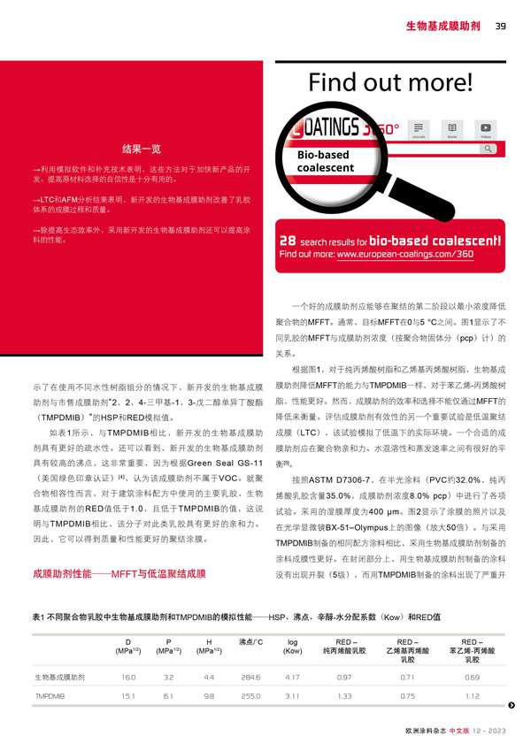 改善乳膠膜質(zhì)量和涂料性能的生物基成膜助劑