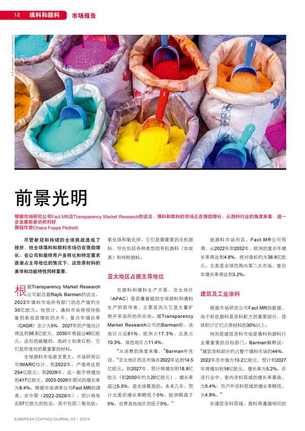 根據(jù)市場研究公司Fact.MR及Transparency Market Research的說法,填料和顏料的市場正在強(qiáng)勁增長。從顏料行 業(yè)的角度來看,進(jìn)一步發(fā)展前景仍然利好