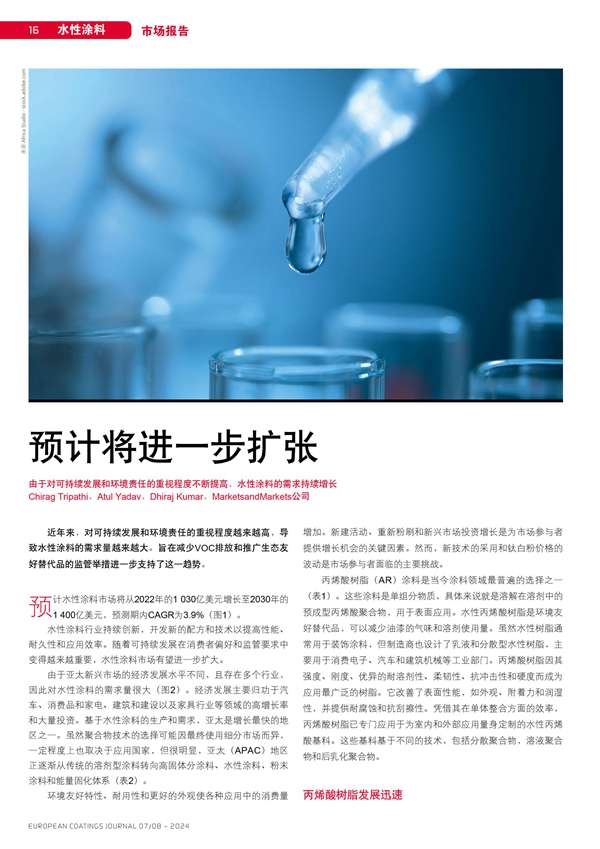 由于對可持續發展和環境責任的重視程度不斷提高,水性涂料的需求持續增長