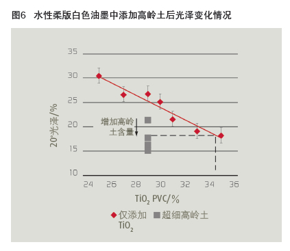 在水性柔版油墨中添加了這種高嶺土后,在不降低不透明 度或印刷濃度的前提下能優化TiO2含量。