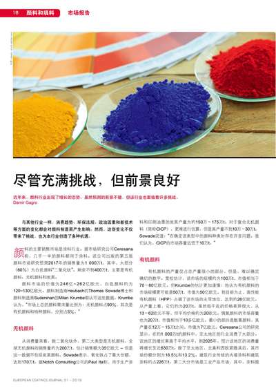 近年來,顏料行業出現了增長的態勢。雖然預測的前景不錯,但該行業也面臨著許多挑戰。