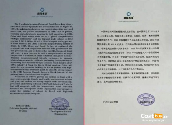 據(jù)悉,晨陽(yáng)水漆還將聯(lián)合國(guó)際教研組織,采用環(huán)保水漆對(duì)巴西各學(xué)校進(jìn)行粉刷,讓孩子們?cè)诟h(huán)保、健康的環(huán)境下學(xué)習(xí)成長(zhǎng),支持巴西的環(huán)保事業(yè)。