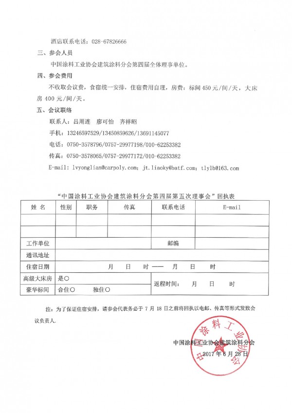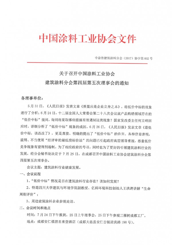 關(guān)于召開中國涂料工業(yè)協(xié)會建筑涂料分會第四屆第五次理事會的通知
