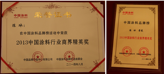 展辰董事長(zhǎng)陳冰先生榮獲“2013中國(guó)涂料行業(yè)商界精英獎(jiǎng)”