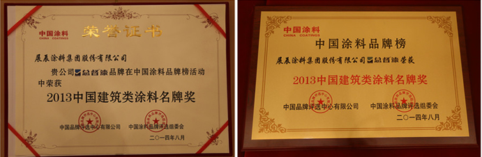 展辰涂料榮獲“2013中國(guó)建筑類涂料名牌獎(jiǎng)”