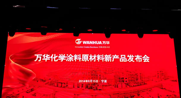 寧波,2014年9月15日- 萬華化學集團股份有限公司于寧波工業園召開“萬華化學涂料原材料新產品發布會”,萬華化學高級副總裁兼技術總監華衛琦博士攜表面材料事業部總經理孫家寬博士、ADI事業部副總經理孫淑常先生,向來賓共同介紹了萬華化學涂料業務發展戰略及相關新產品,這是萬華化學繼去年11月高調亮相中國國際涂料展后的又一重大舉措。中國涂料協會會長孫蓮英女士,中國塑料加工工業協會人造革合成革專委會副秘書長田景巖先生,安徽大學化學化工學院吳海平教授,常州涂料化工研究院副院長趙曉東先生等行業專家及長期關心和支持萬華化學發展的協會企業同仁,以及媒體界朋友共同出席了此次盛會。