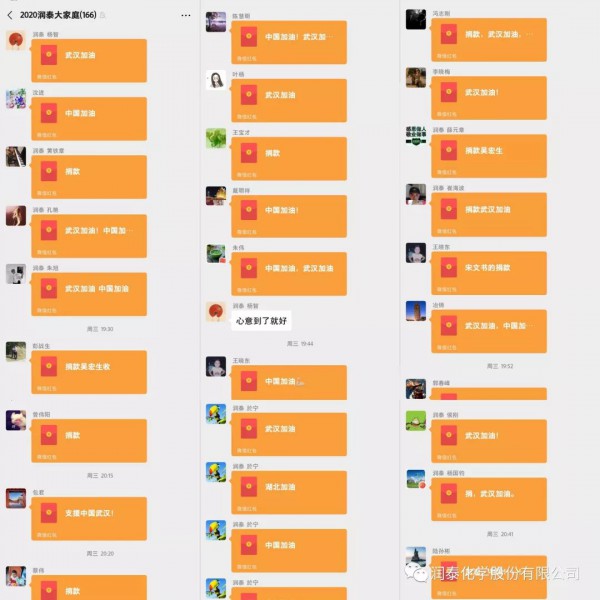 5日傍晚時(shí)分,“潤泰大家庭”群里下起了瘋狂的“紅包雨”,傳遞著濃濃的愛意和溫暖的情誼。黨員干部紛紛帶頭,全體員工積極響應(yīng)。行政人員、一線員工、后期保障人員,甚至是剛剛加入潤泰大家庭不久的新員工,短短時(shí)間140余名員工參與了愛心捐贈(zèng),籌集愛心款項(xiàng)四萬余元,以實(shí)際行動(dòng)為抗戰(zhàn)疫情做出了微薄的貢獻(xiàn)。