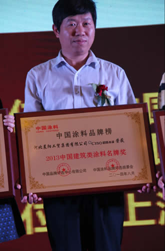 晨陽集團副總裁花東栓代表晨陽領(lǐng)取中國建筑類涂料名牌獎