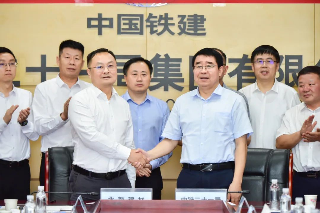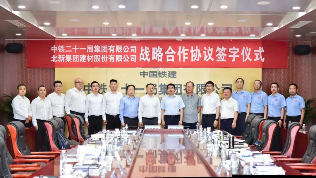 中鐵二十一局集團(tuán)、西部鐵建工程材料科技有限公司和北新建材有關(guān)部門(mén)、單位負(fù)責(zé)同志參加簽約儀式和座談。中鐵二十一局集團(tuán)有限公司隸屬?lài)?guó)務(wù)院國(guó)資委下屬的中國(guó)鐵建股份有限公司,是集工程建設(shè)、科技研發(fā)、房地產(chǎn)開(kāi)發(fā)、礦產(chǎn)資源開(kāi)發(fā)及商貿(mào)經(jīng)營(yíng)等于一體的國(guó)有特大型建筑企業(yè)集團(tuán)。擁有施工機(jī)械、檢測(cè)等設(shè)備4137余臺(tái)(套),年度施工能力400億元以上。先后完成了青藏鐵路等60多項(xiàng)國(guó)家鐵路干線工程建設(shè)、13000多條公里電氣化鐵路工程建設(shè),都汶高速等40多條高等級(jí)公路建設(shè)。曾先后榮獲中國(guó)建筑工程魯班獎(jiǎng)、詹天佑獎(jiǎng)、廣廈獎(jiǎng)、國(guó)家優(yōu)質(zhì)工程金(銀)獎(jiǎng)、全國(guó)百項(xiàng)精品工程獎(jiǎng)30多項(xiàng);榮獲省(部)級(jí)優(yōu)質(zhì)工程獎(jiǎng)60多項(xiàng);榮獲國(guó)家、省部級(jí)科技進(jìn)步獎(jiǎng)30多項(xiàng),其中國(guó)家科技進(jìn)步特等獎(jiǎng)1項(xiàng);國(guó)家和省部級(jí)工法40多項(xiàng)、專(zhuān)利130多項(xiàng),其中發(fā)明專(zhuān)利30多項(xiàng),創(chuàng)中國(guó)建筑施工企業(yè)新紀(jì)錄6項(xiàng)。
