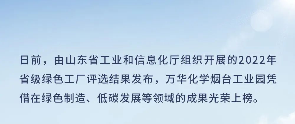 綠色工廠|萬華化學(xué)煙臺(tái)工業(yè)園獲評(píng)2022山東省綠色工廠
