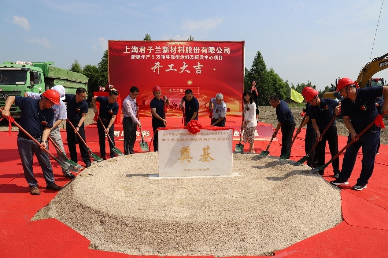 7月27日上午,上海君子蘭新材料股份有限公司新建環(huán)保涂料研發(fā)生產(chǎn)基地開(kāi)工奠基儀式在上海市青浦區(qū)成功舉行。君子蘭董事長(zhǎng)馬慧峰、青浦工業(yè)園區(qū)黨委副書記、總經(jīng)理曹林云、黨委委員、副總經(jīng)理沈豪、君子蘭副總經(jīng)理兼營(yíng)銷中心總監(jiān)王海軍等集團(tuán)高層領(lǐng)導(dǎo)、廣東政和工程有限公司總經(jīng)理王芳、上海青園建設(shè)集團(tuán)有限公司總經(jīng)理費(fèi)峰等有關(guān)領(lǐng)導(dǎo)共同見(jiàn)證奠基典禮這一重要時(shí)刻。