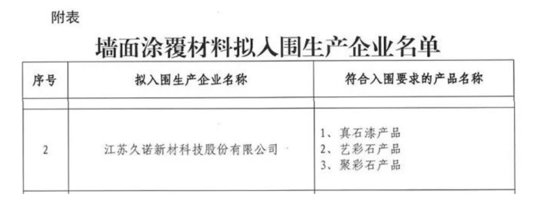 根據《雄安新區建筑材料集中采購管理規定(試行)》《雄安新區大宗建材集采服務平臺供應商管理細則》《雄安新區大宗建材集采目錄入圍指標體系(墻面涂覆材料篇)》,經過多家企業自主報名、專家評審后,公示了擬入圍集采目錄的墻面涂覆材料企業名單。久諾集團以及旗下真石漆、藝彩石、聚彩石三款綜合性能出色的產品,通過專家評審團的“真金火煉”審核與考驗,最終得到了來自國家重大項目方的肯定,久諾將為保障雄安新區各大工程建設所需墻面涂覆材料供應質量提供堅實支撐!