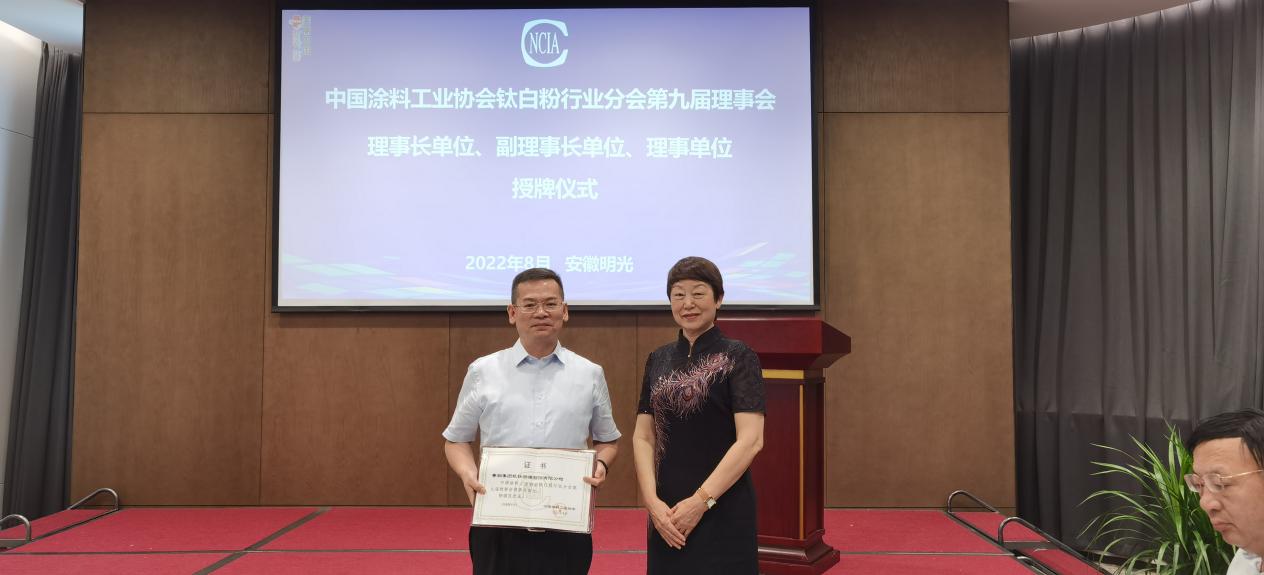向中國涂料工業(yè)協(xié)會鈦白粉行業(yè)分會理事單位頒發(fā)證書