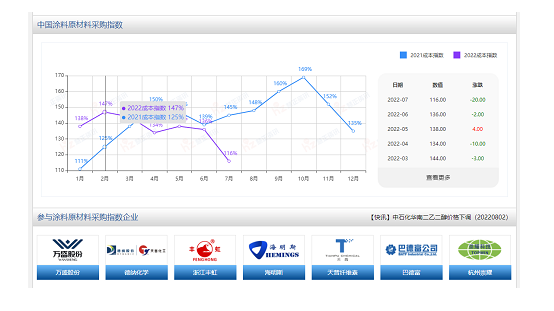 據(jù)悉,中國涂料行業(yè)價(jià)格指數(shù)分為上游原材料采購指數(shù)和下游成品價(jià)格指數(shù)兩部分。
