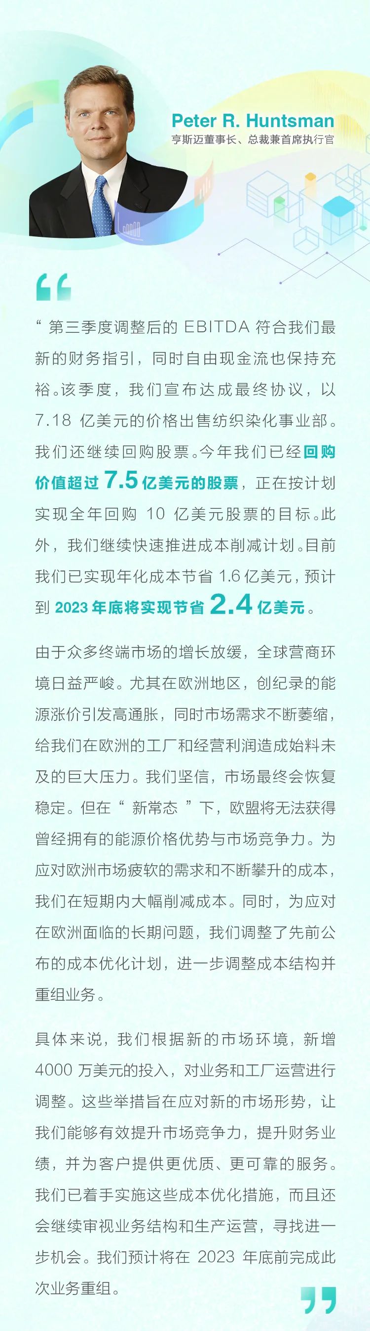 財(cái)報(bào)|亨斯邁前三季度回購超過7.5億美元股票