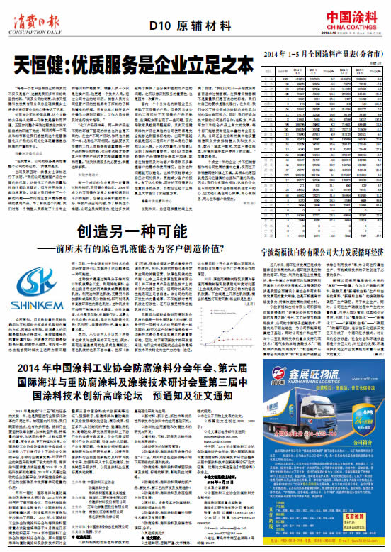 中國(guó)涂料報(bào) 2014年7月10日 星期四