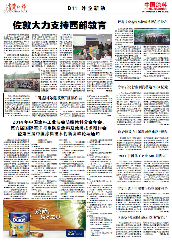 中國涂料報(bào) 2014年8月14日 星期四
