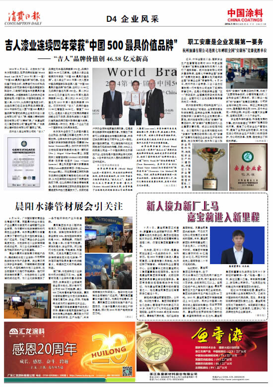 吉人漆業(yè)連續(xù)四年榮獲“中國500最具價值品牌”